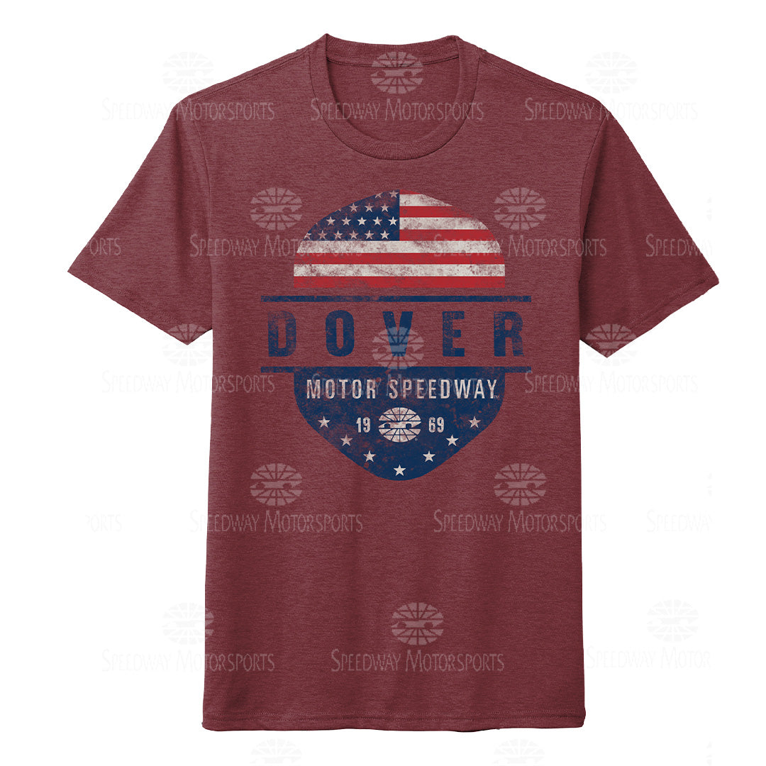 Officially licensed adult tee featuring a two sided design for the Dover Motor Speedway