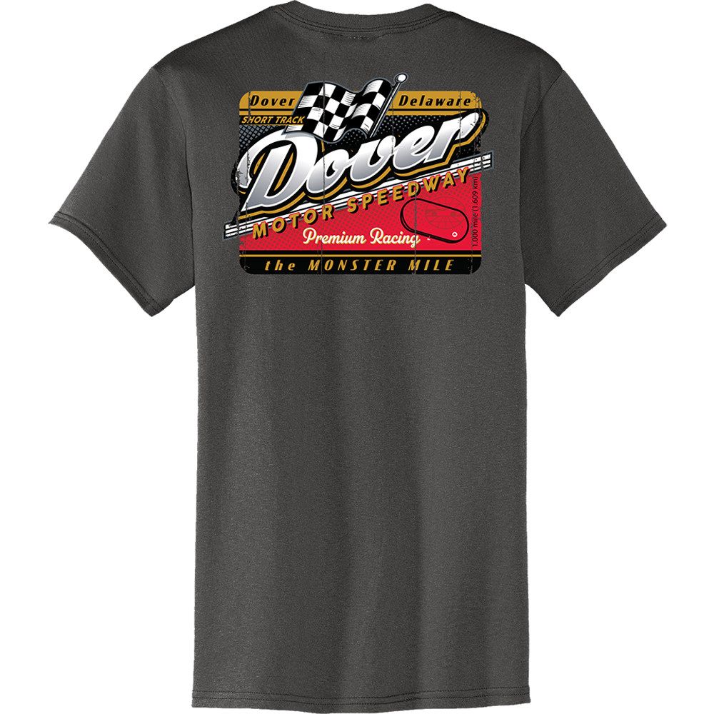 Officially licensed adult short sleeve tee featuring a two sided design for Dover Motor Speedway