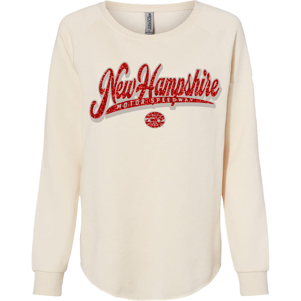 Officially licensed adult ladies fleece sweat shirt featuring a one sided design for New Hampshire Motor Speedway